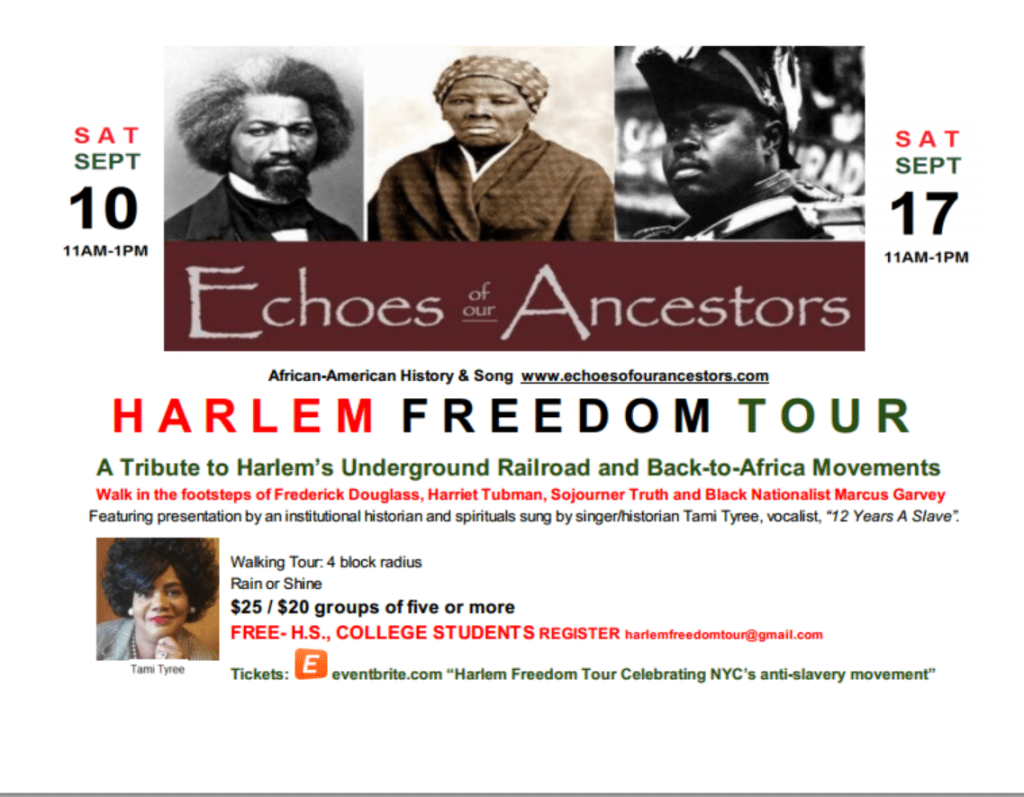 The Harlem Freedom Tour is the brainchild of Tami Tyree who wanted to highlight four churches in central Harlem whose activism began during the 1800’s and early twentieth century. Located within steps of each other, three of the four churches were involved in the slavery abolitionist movement and participated in the Underground Railroad; hosting such historical figures as Sojourner Truth, Harriet Tubman, and Frederick Douglass.